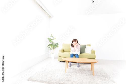 自宅でリラックスをする若い女性