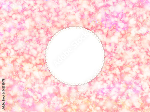キラキラしたイルミネーションピンクとパールの丸フレーム背景
