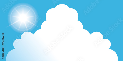 夏のイメージの縦型バナー素材|背景イラスト 青空と白い雲と太陽