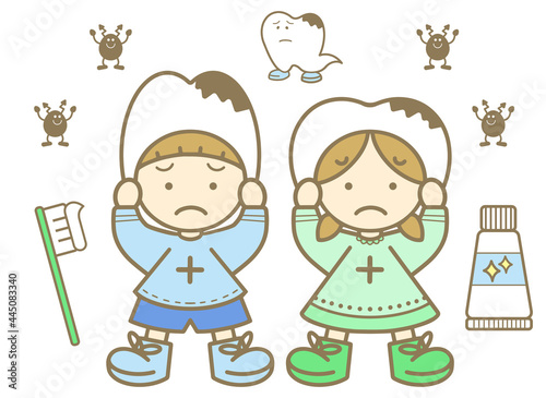 歯をモチーフにした男の子と女の子のキャラクター むし歯版