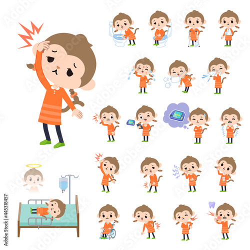 怪我や病気状態のさるの女の子のセット
