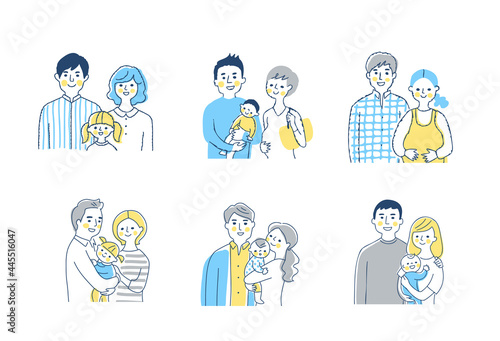 複数の若い家族 笑顔 上半身 セット