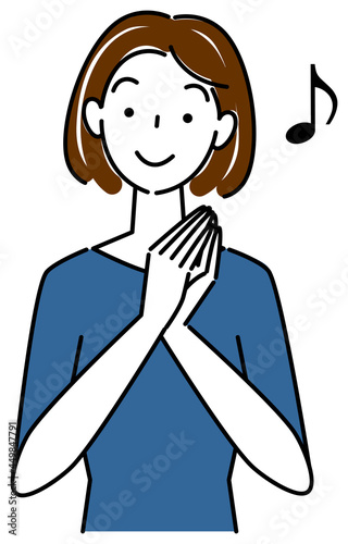 両手の手のひらを合わせて喜んでいる笑顔の可愛い女性 イラスト シンプル ベクター