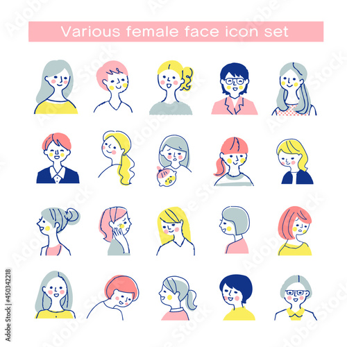 さまざまな表情の女性 バストアップ セット