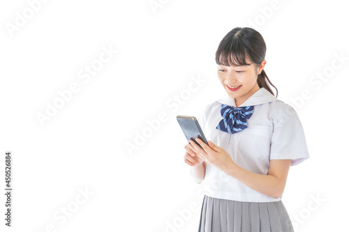スマートフォンを使う若い女子学生