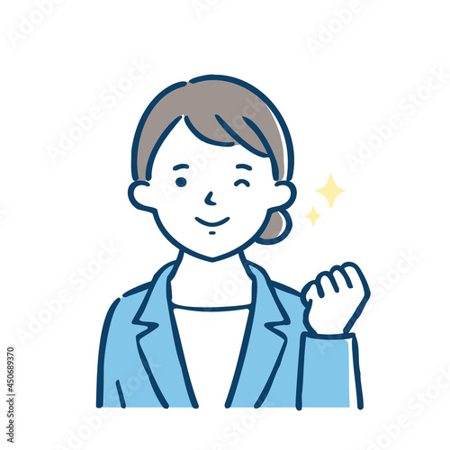 ガッツポーズをする女性