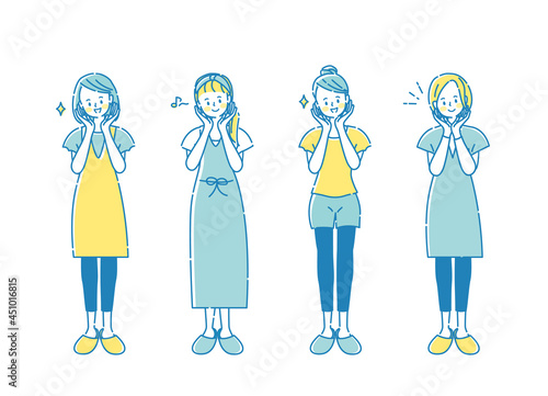 笑顔の女性の表情イラストセット