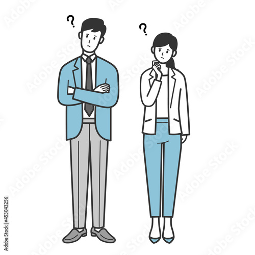 ビジネスパーソン 疑問 悩む 首をかしげる男女