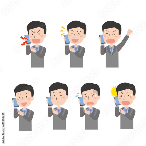携帯電話で話す会社員男性ポーズセット