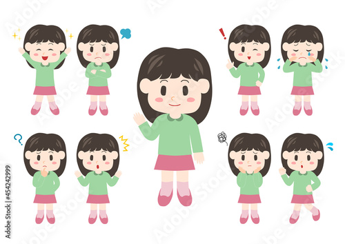 幼い女の子のポーズと表情のイラスト: 全身セット