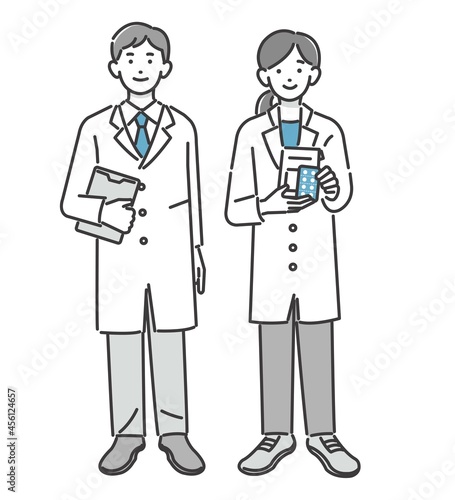白衣を着て薬やバインダーを持つ薬剤師の全身のベクターイラスト素材/医者/医療従事者