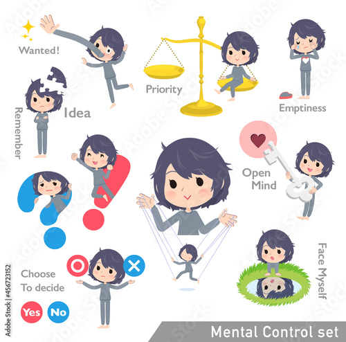 メンタルコントロールをするニート女性のセット