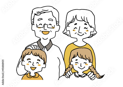 笑顔のおじいさんおばあさんと孫たち