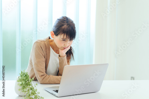 パソコンを使う中高年の女性