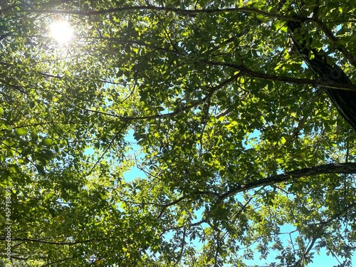 晴れた森の木漏れ日 自然 風景