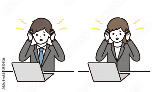 ビジネスマン ビジネスウーマン 頭痛 耳鳴り パソコン