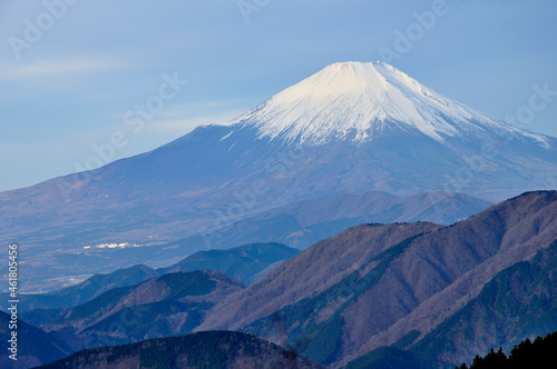 朝の丹沢山地より望む富士山 丹沢 二ノ塔より富士山、右が伊勢沢ノ頭