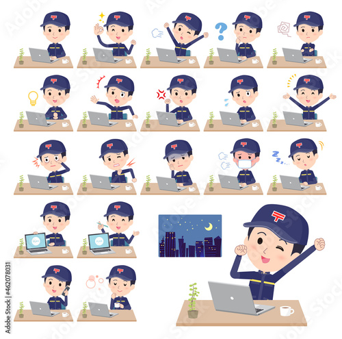 デスクワークに関する郵便配達員男性のセット
