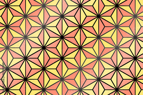 麻の葉模様のステンドグラス背景 横位置 オレンジ