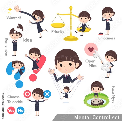 メンタルコントロールをする郵便スーツ女性のセット
