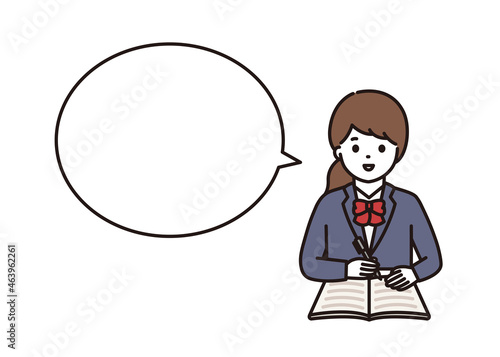 笑顔で勉強をする制服の女子学生 吹き出し