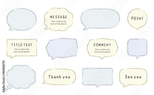 シンプルな吹き出しフレームのイラストセット。手描きペン風バージョン。