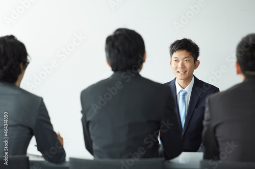 オフィスで面接を受けている男性と面接官