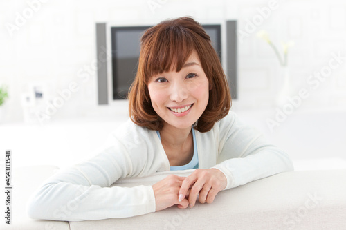 ソファーに座る笑顔の女性