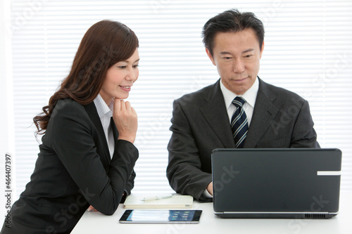 打ち合わせ中のビジネスマンとビジネスウーマン