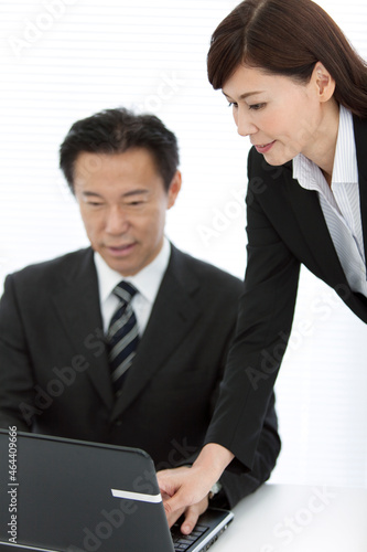 打ち合わせ中のビジネスマンとビジネスウーマン