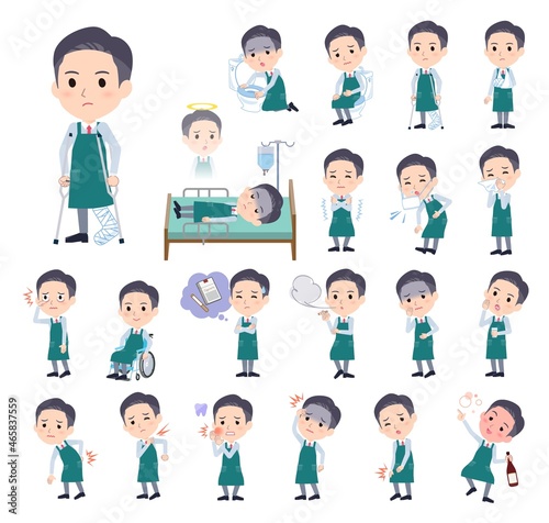 怪我や病気の状態のスーパーマーケット店員男性のセット