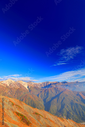 紅葉の白馬岳など白馬連峰の山並み, 白馬村,北安曇郡,長野県