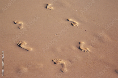 ビーチの足跡 光のいたずらで 浮き出てみえます。