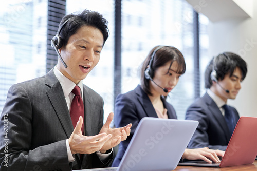 カスタマーセンターで応答するアジア人ビジネスパーソン