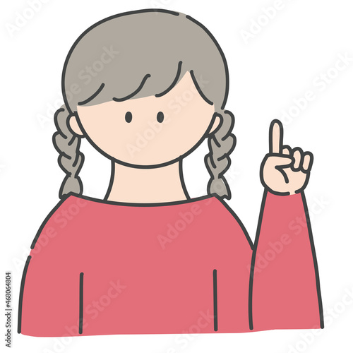 ポイントのポーズをしたの女の子のバストアップアイコンイラスト