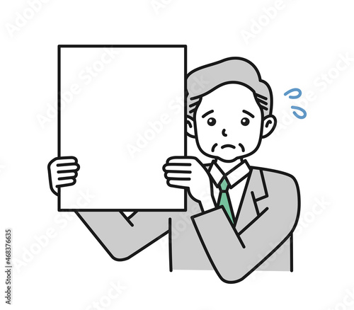 残念なお知らせをボードで見せる年配男性のイラスト素材