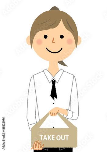 テイクアウト商品を持つカフェスタッフ