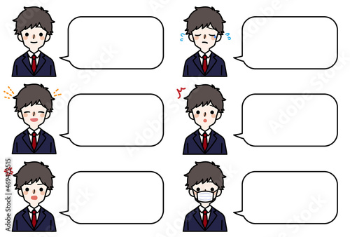 人物イラスト_男子高生表情セット_吹き出し