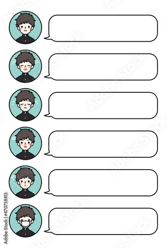 人物アイコン_男子高生表情セット_吹き出し
