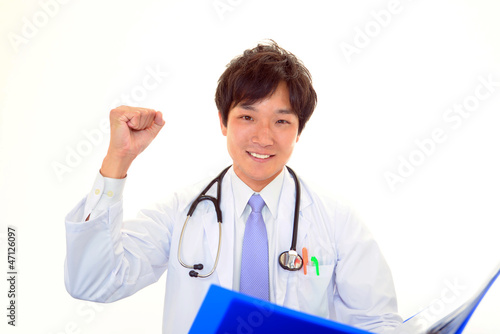 ガッツポーズの医師