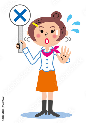 バツの札で回答する女性