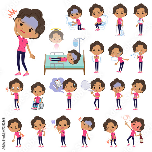 怪我や病気の状態のスポーツウエアを着たアフリカ系アメリカ人女性のセット