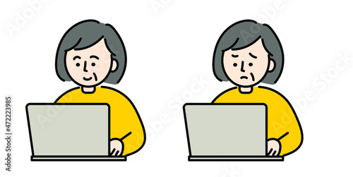 パソコンをする女性 おばあさん おばさん 老人 高齢 中高年