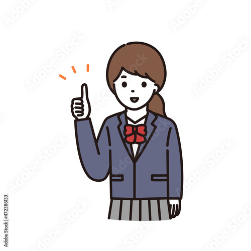 笑顔でグッドサインをする学生服の女子高校生・中学生
