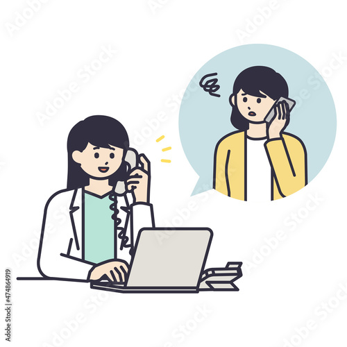 困っている女性の相談に乗る白衣を着た女性のイラスト素材