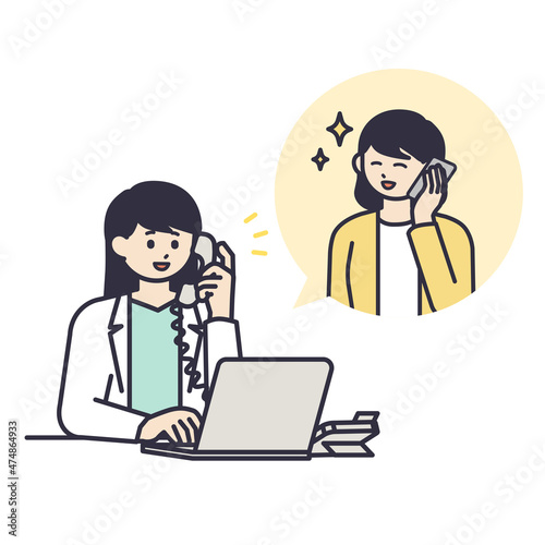 困っている女性の相談に乗る白衣を着た女性のイラスト素材