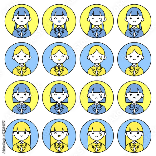 人物アイコンセット_女子高生表情