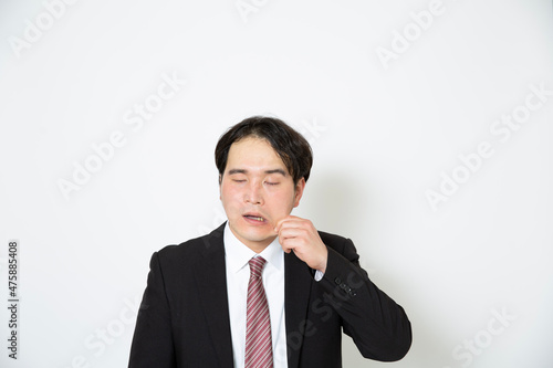 頬を引っ張るビジネスマン