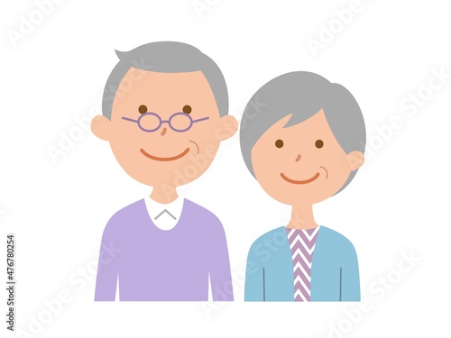 正面を向いた、シニア夫婦