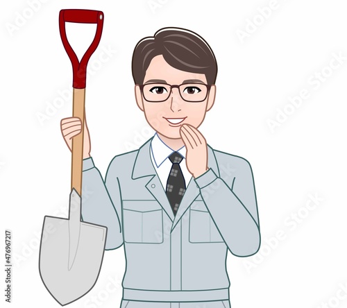 作業着を着た若い男性